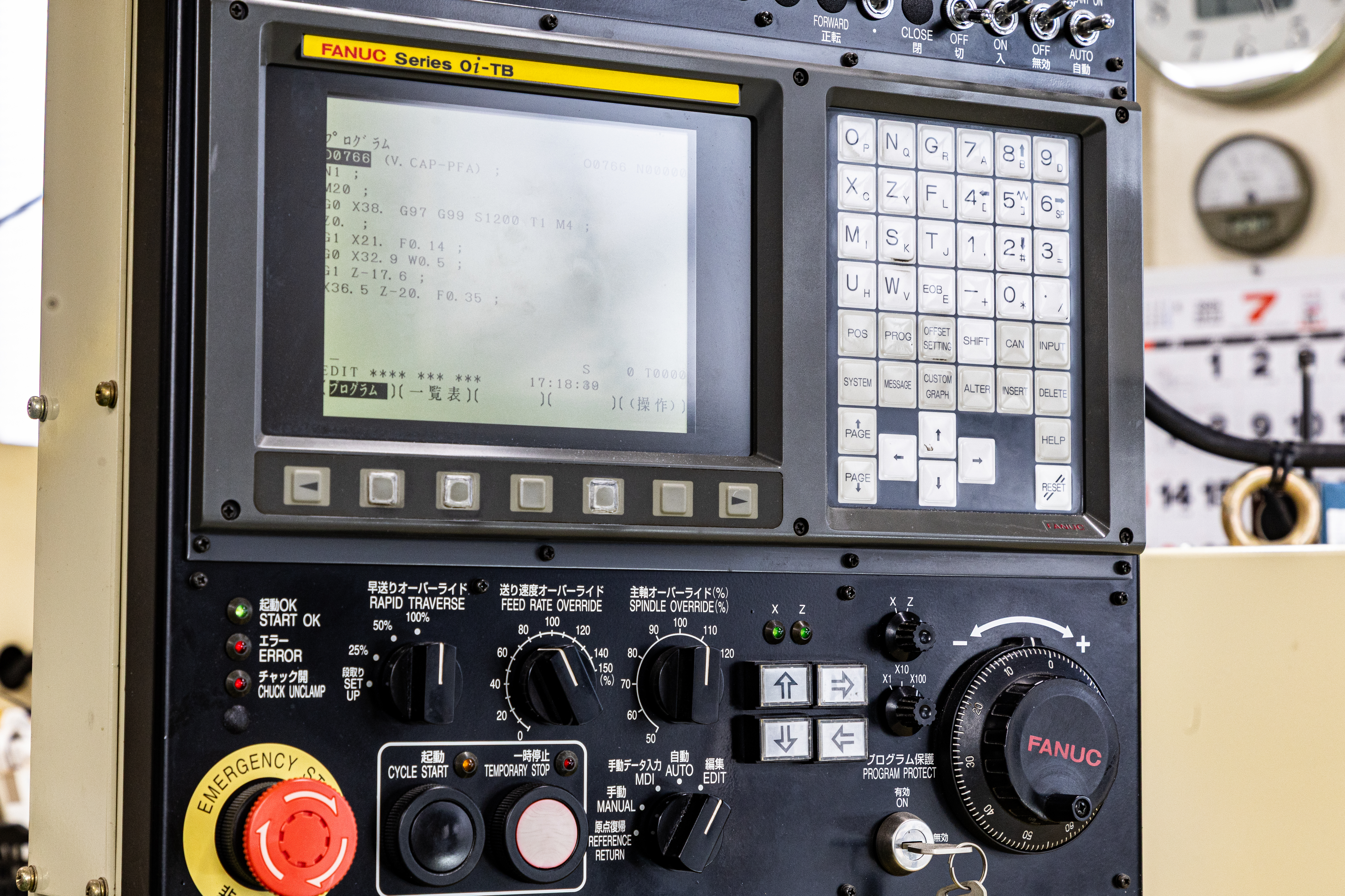 高性能スピンドル搭載で仕上げ加工も安心 6,000〜8,000rpmのスピンドル回転数を備え、硬加工から仕上げまで幅広く対応。Fanuc Series 21i-TB制御で安定した制御性。